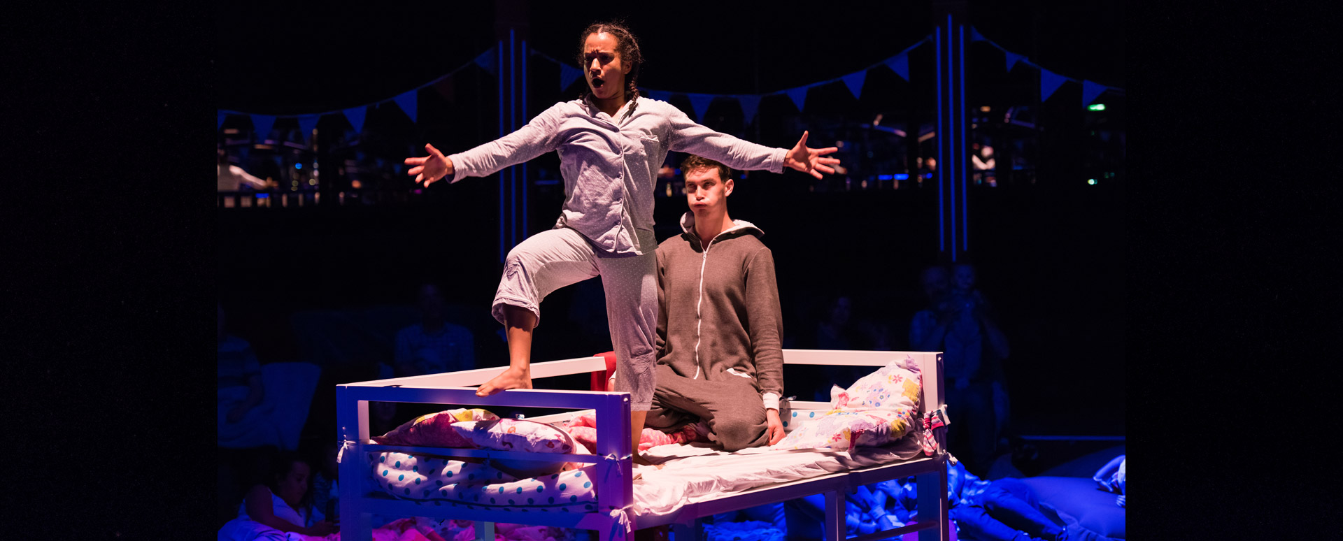 英國沖天飛劇團帶來一次耳目一新的劇場體驗,將劇場佈置成睡房,觀眾置身床鋪和咕臣堆中。宛如走馬燈的七彩投影,帶你走進主角半夢半醒的幻想世界,配合高空雜技、歌唱、舞蹈、戲劇和多媒體3D 動畫效果,上天下海,童趣十足。無論大人細路看了都定必會心微笑,甜在心頭,珍惜親子時光。