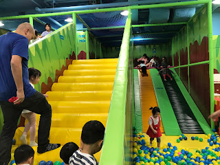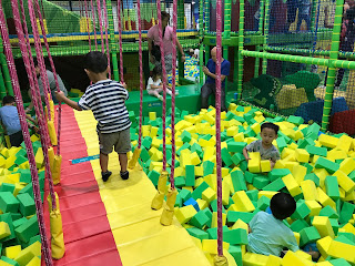 面積超大的彈跳迷宮,共分成上下兩層,每層都有超豐富的攀爬架或障礙設施。而且還有一個大面積波波池!說真的,真的超好玩!!!