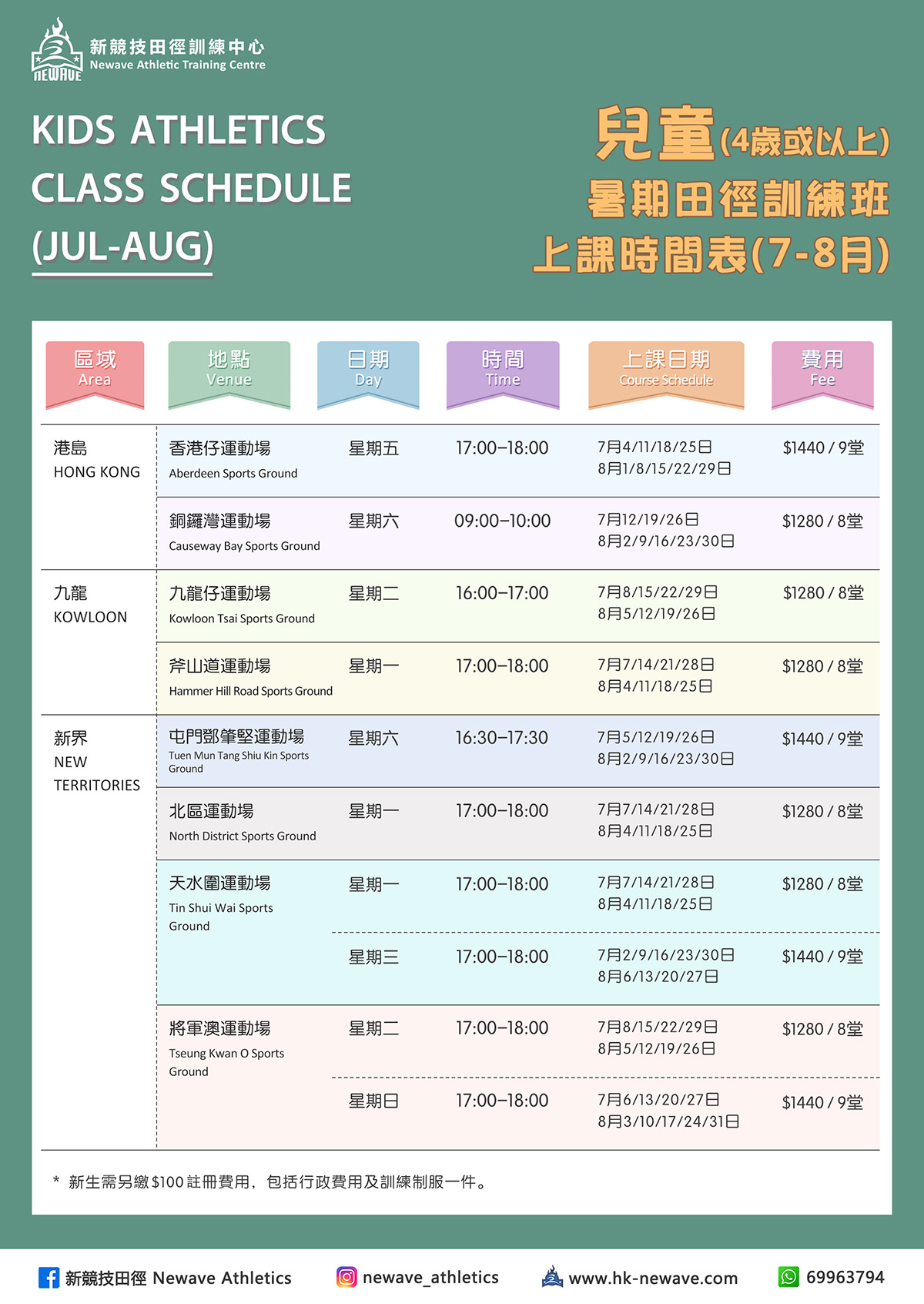 Want to take advantage of the summer holidays to do some exercise? Do you want to make the most of your time to prepare for this year's academic year? Newave Athletics Summer Training Programme is the right choice for you!