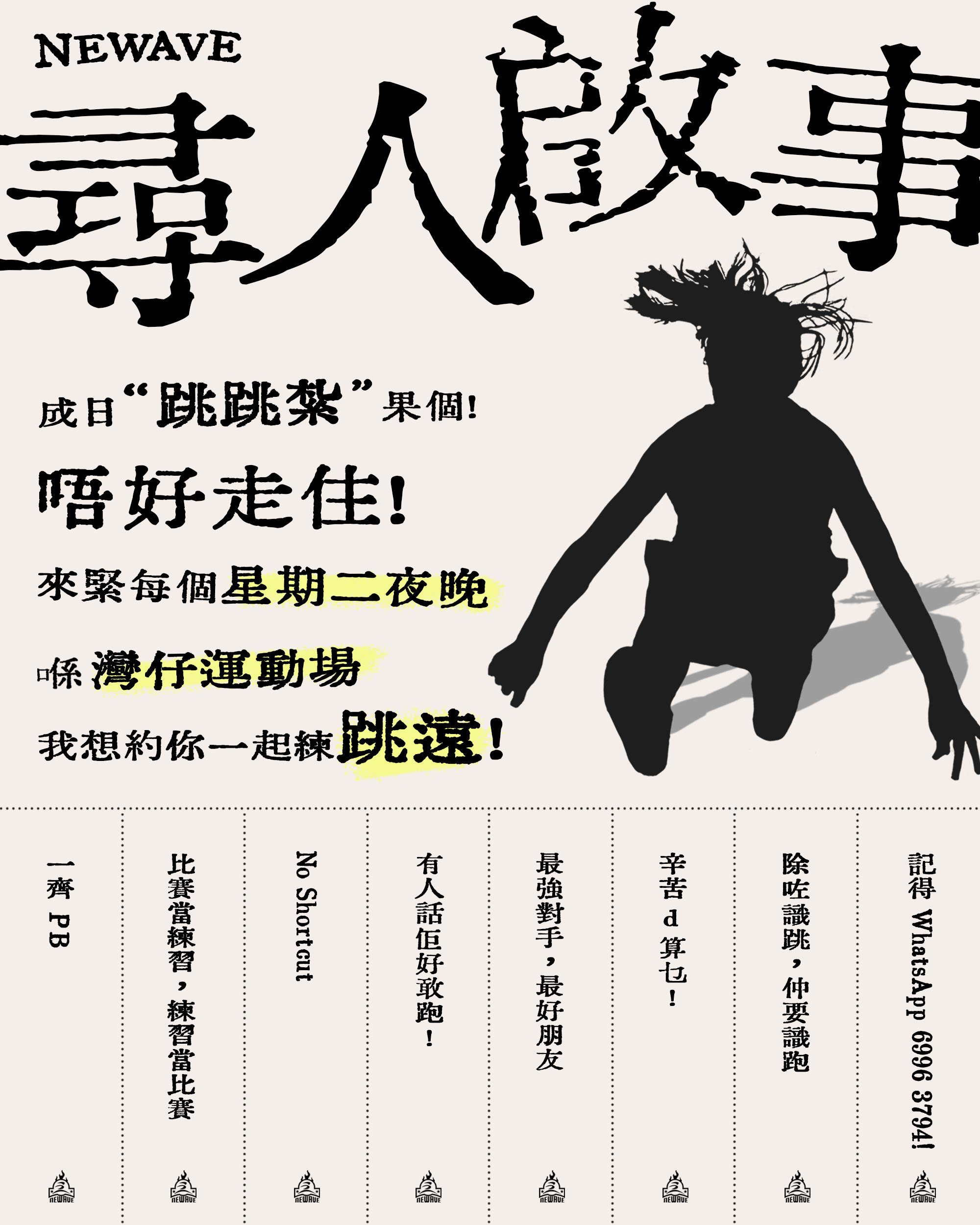NEWAVE成立於2021年,旨在推廣香港田徑運動,普及並鼓勵本地兒童及青少年積極參與田徑,培育新一代青少年對運動的熱誠,並從中發掘優秀運動員。