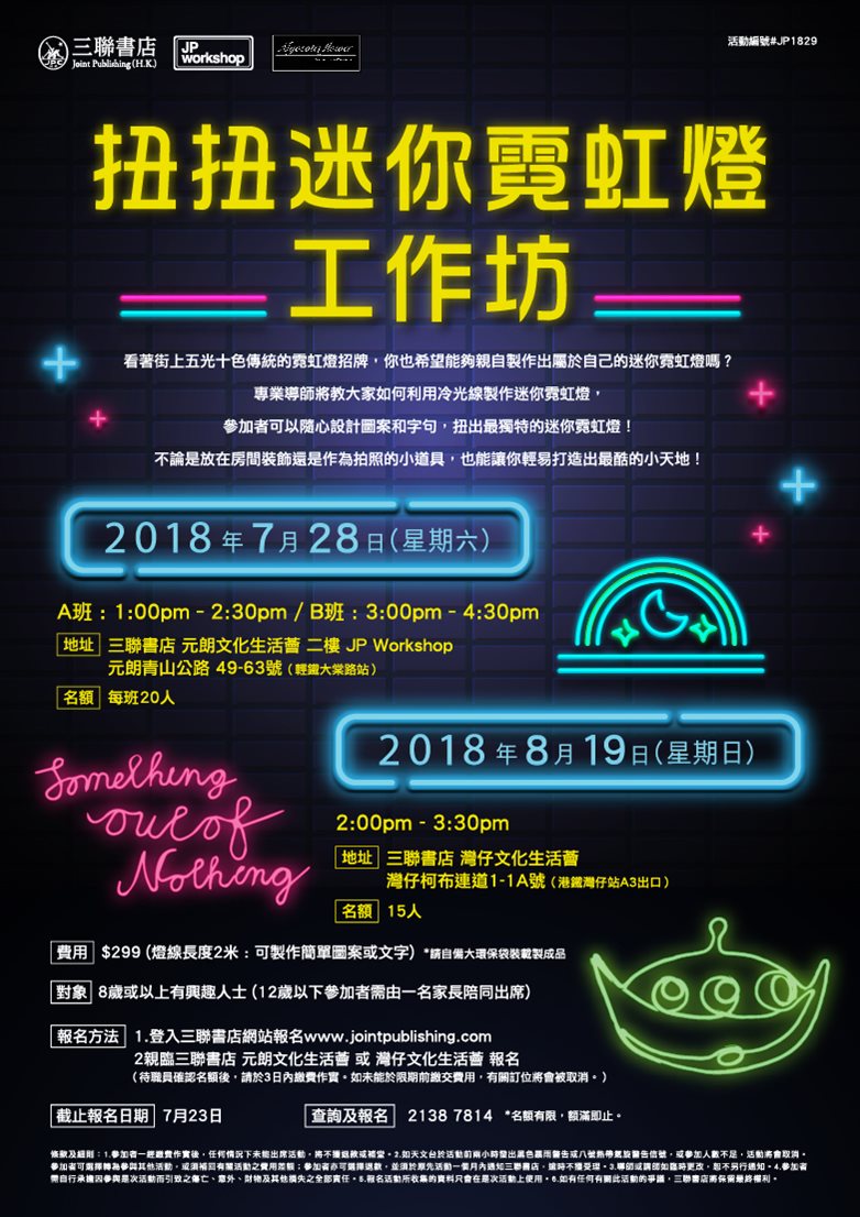 報名及詳情:http://www.jointpublishing.com/event/in-store-activity/jp-workshop/workshop20180728.aspx