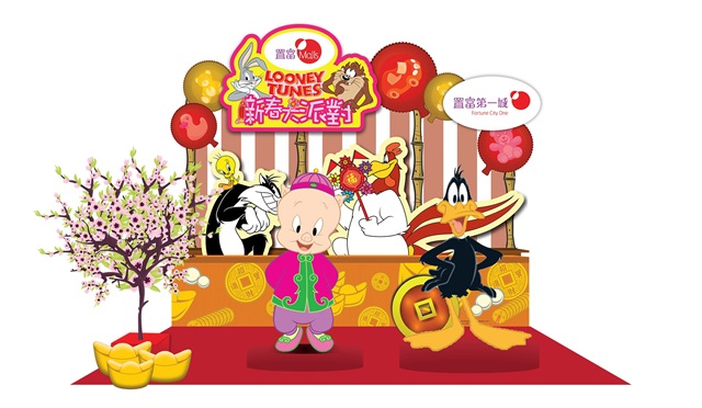 置富Malls今個新年請來人見人愛的LOONEY TUNES齊集置富Malls各大商場(包括置富嘉湖、置富第一城、置富都會、馬鞍山廣場、都會駅、麗港城商場、麗城薈、映灣薈、銀禧薈、荃薈) 與你歡度佳節,超過10個大受歡迎的LOONEY TUNES卡通人物包括Bugs Bunny (兔巴哥)、Tweety (崔弟)、Porky Pig (豬小弟)及Sylvester (傻大貓)等與你大開新春派對,祝願各位在新的一年「天天置富‧家家有福」。