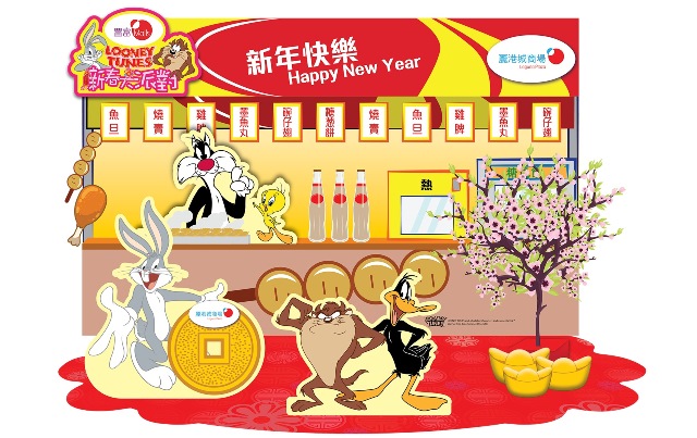 麗港城商場設置年宵花市必備的《LOONEY TUNES家肥屋潤美食檔》。這個充滿香港特色的小食檔由Sylvester (傻大貓)及Tweety (崔弟)主理,提供美味的地道港式小食,包括魚蛋、燒賣及墨魚丸等,更有家喻戶曉的飲品,讓顧客回味昔日情懷。