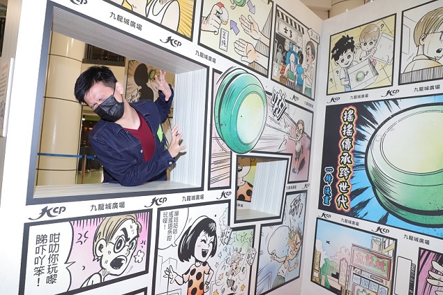 商場更邀得90後本地薑漫畫家一鋒(林沛鋒)原創搖搖漫畫故事,以80年代港漫風格打造一本巨型立體港漫,大家更可於《巨型港漫打咭區》裝置內瞓身投入漫畫角色拍照打卡。立志要令更多人認識港漫的一鋒,憑著一股蠻勁以薄裝漫畫推出市場,心口除掛住個「勇」字外,腦裏亦滿是謀略,其作品不乏熱血及格鬥元素,既有傳統港漫的影子,部分細節加入新一代繪法,以美漫流行的Matte Painting做法,在實景相片上繪畫,把香港特色街景元素融入創作題材。和KCP九龍城廣場識英雄重英雄的他,認為九龍城是一個充滿香港傳奇特色的地方,很高興是次能把這份香港搖搖情懷融入其作品,以港式武打畫風描繪搖搖的動感「非常過癮」,同時滿足港漫迷、搖搖迷和老香港。