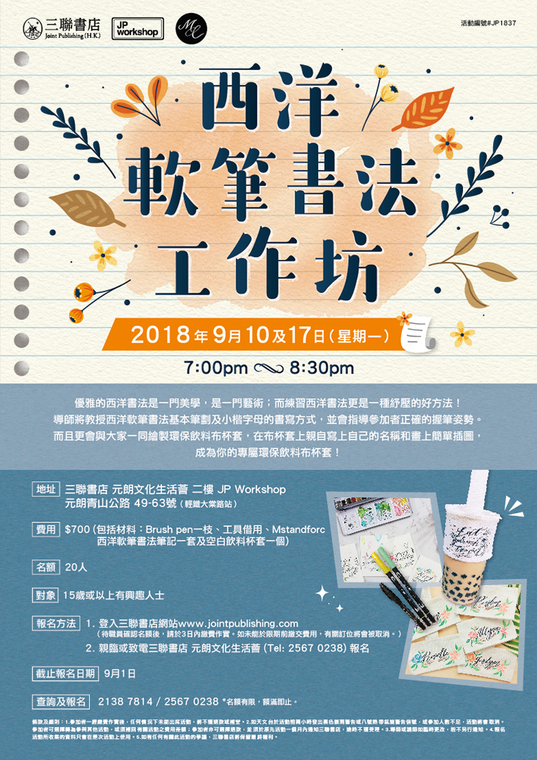 登入三聯書店網站 http://www.jointpublishing.com/event/in-store-activity/jp-workshop/Calligraphy.aspx
