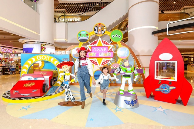 Mikiki中庭設有4大打卡位,以及兩大互動遊戲區,讓大家與喜愛的主角開心暢玩。5米高「三眼仔巨型扭蛋機」讓大家一試運氣,送出多款PIXAR精品或指定商戶禮品!《反斗奇兵》主角胡迪與女朋友牧羊女寶貝現身巨型故事書中來個浪漫邂逅; 霓虹胡迪剪影裝飾更是必到打卡位。「太空戰士,一飛沖天!」巴斯光年拍照場景,粉絲不要忘記拍照留念!