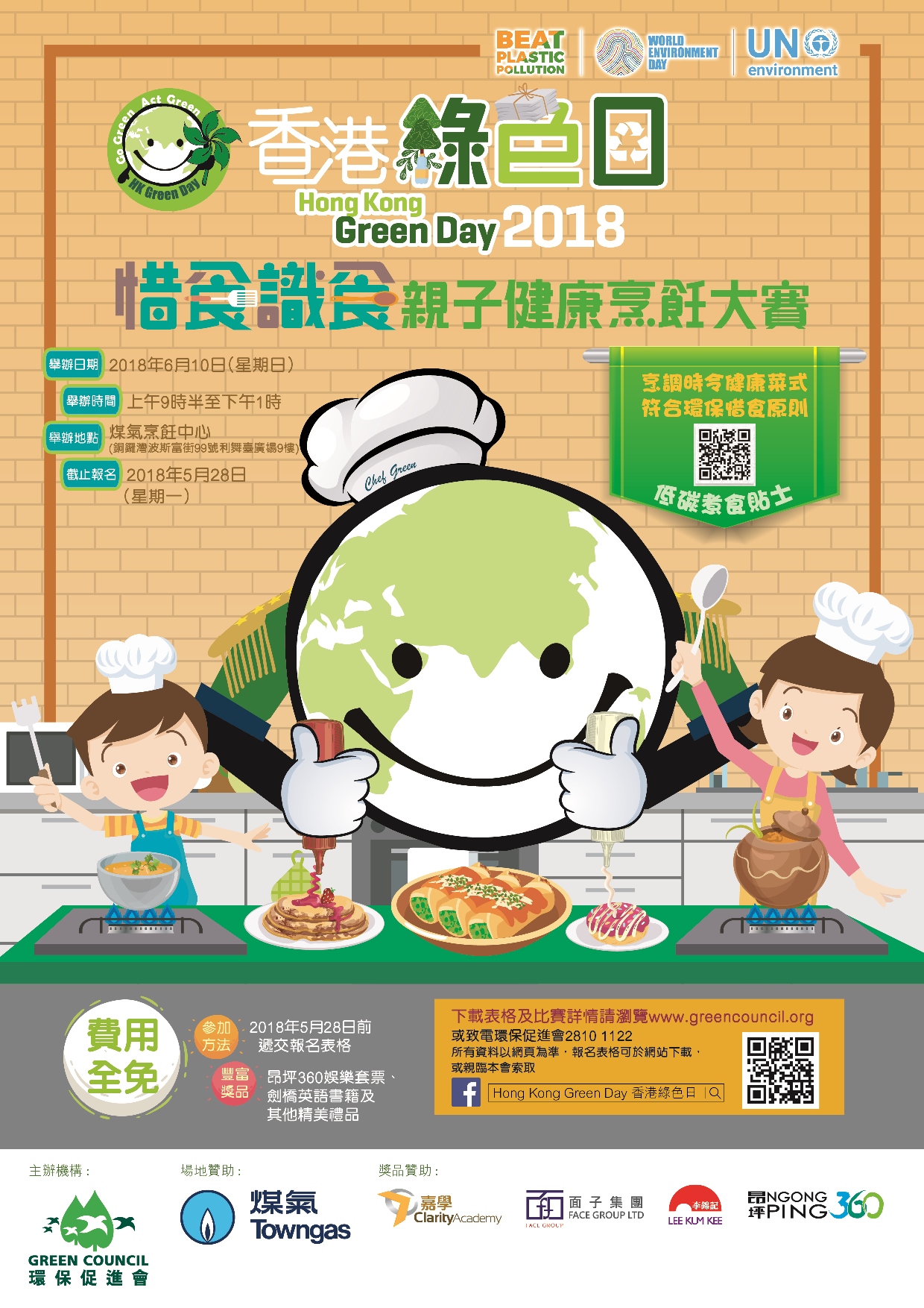 環保由生活做起,當中「惜食」更是不可或缺!選用有營的 食材,鼓勵珍惜食物及減少廚餘,更可以令人吃得健康,而 且物盡其用,一舉多得。環保促進會將於2018年6月1 0日舉辦香港綠色日「惜食識食」親子健康烹飪大賽,透過 選購和煮食過程中宣揚環保,建立親子關係。