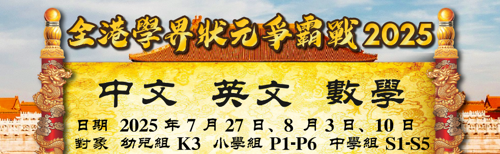 - 參賽者參加 3 項比賽 (中文、英文、數學)可獲頒「學有所成」獎項