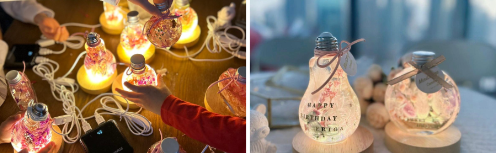 選用精美的永生花材,製作屬於自己的獨一無二的浮游花小夜燈。
