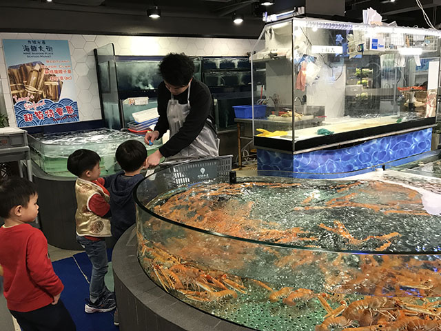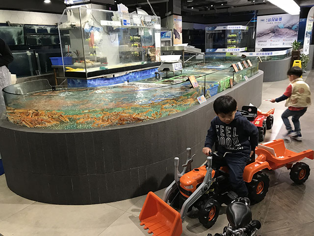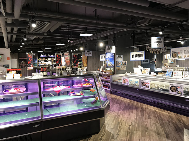 九號水產內有超市、餐廳、商店和賣活海鮮的檔口。