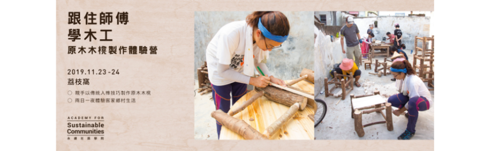 是次體驗營將會使用原木(即未切割打磨的木材),讓參加者學習選材、切割和製作組件的工序,並製作形態獨特的木櫈。兩日一夜體驗營將在荔枝窩村舉辦,學員除了可以學習傳統手工藝,還能體驗客家鄉郊生活、品嘗原居民的日常菜式!