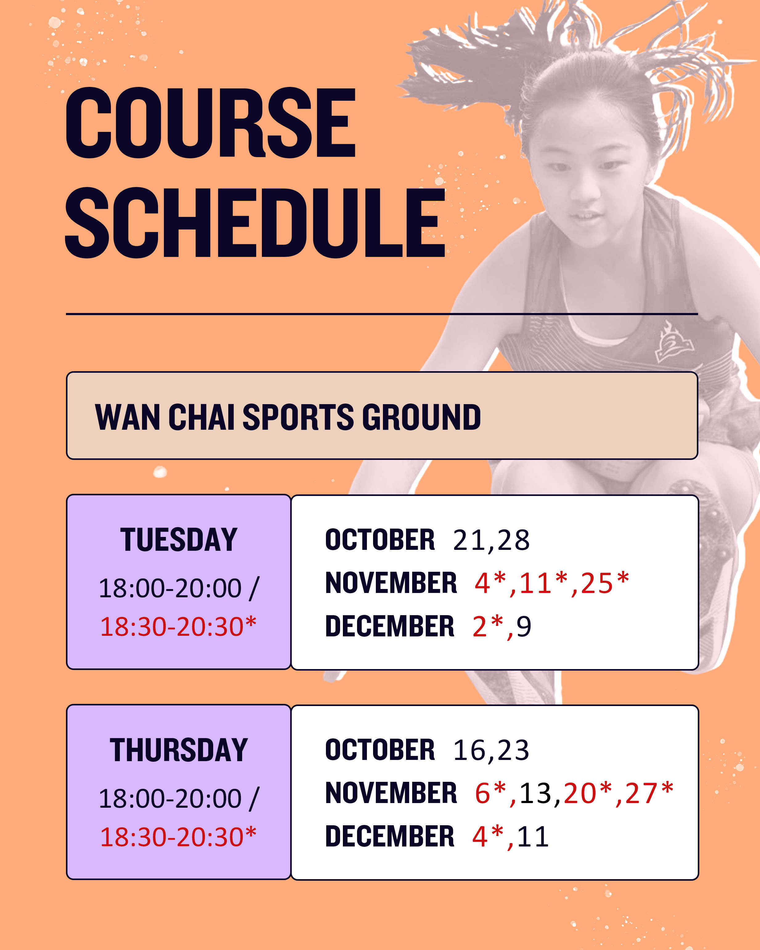 - 時間:逢星期二、四 18:00-20:00(部分日期為18:30-20:30,詳情查看時間表)