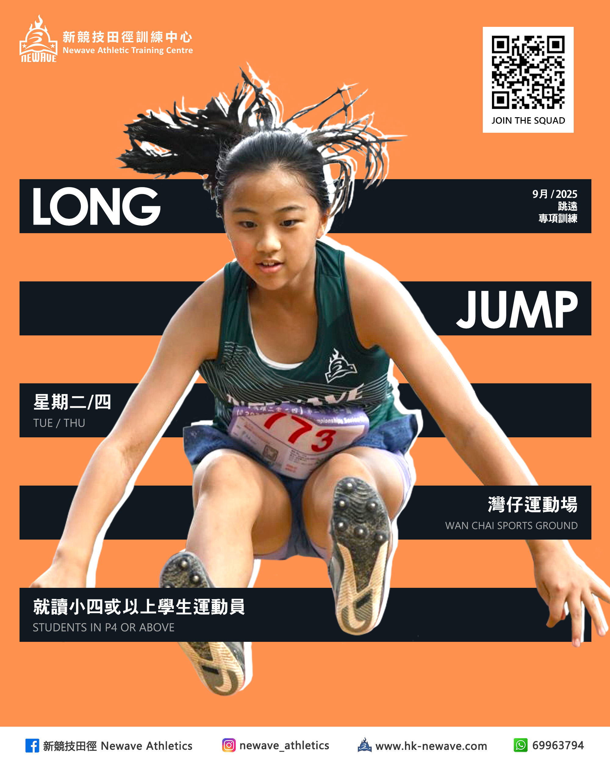 新競技田徑 Newave Athletics 專為運動員打造嘅跳遠技能提升課程,旨在幫助學員掌握正確動作,不斷進步、跳得更遠!
