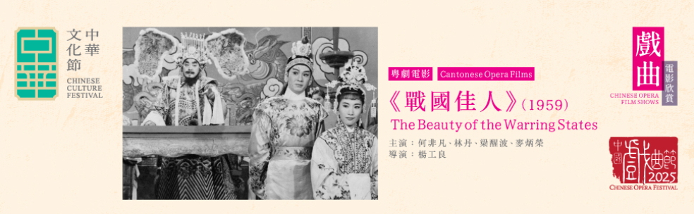 作為「中華文化節2025」重要一環的「中國戲曲節」將於五月至九月期間推出「戲曲電影欣賞」節目,精選十齣五十至八十年代的經典戲曲電影,涵蓋粤劇、京劇和越調。為配合今屆戲曲節的「三國戲」主題,選映的作品多取材自《三國演義》故事,更特意選取與《三氣周瑜》、《借東風》、《群英會》和《長坂坡》等劇目相關的電影,讓戲曲節的舞台演出與銀幕電影相映成趣。