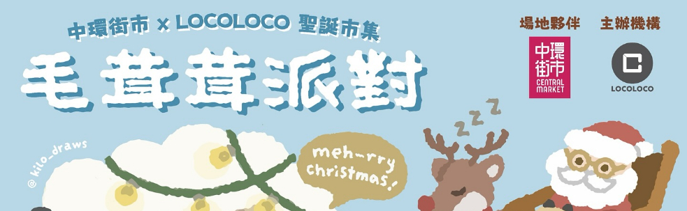 聖誕月份到喇,由12月9日起LOCOLOCO會去到中環街市舉辦「毛茸茸派對.聖誕市集」,今次活動更邀請了插畫師kilo_draws繪製市集海報!