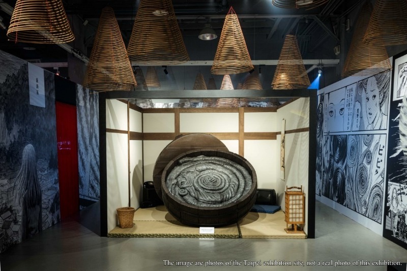 成功穿過刺激的體驗展區後,會走進「神秘展區」,可以細閱伊藤潤二的動畫複製原稿,了解創作背後的想法及秘辛,更特設《漩渦》區域,展出經典場景的立體擺設,親身感受故事中的驚慄氣氛。