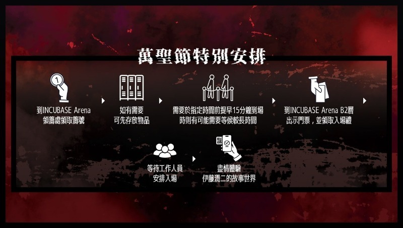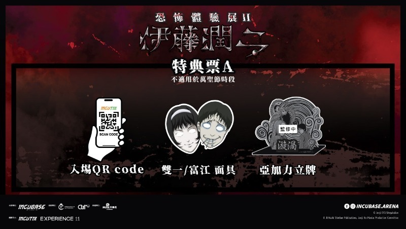 今年萬聖節走進伊藤潤二大師的恐怖世界,在香港INCUBASE Arena體驗「日式鬼屋」。「伊藤潤二 恐怖體驗展2」有經典角色富江和雙一現身,原汁原味還原故事,驚嚇指數直線上升。成功行完鬼屋後更可以欣賞複製動畫原稿,以及《漩渦》經典場景的立體擺設。