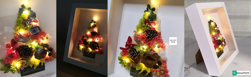 費用包括保鮮花花材、大自然素材、聖誕配飾、LED燈連電芯、立體畫架(可掛牆/座枱)、包裝及說明書。