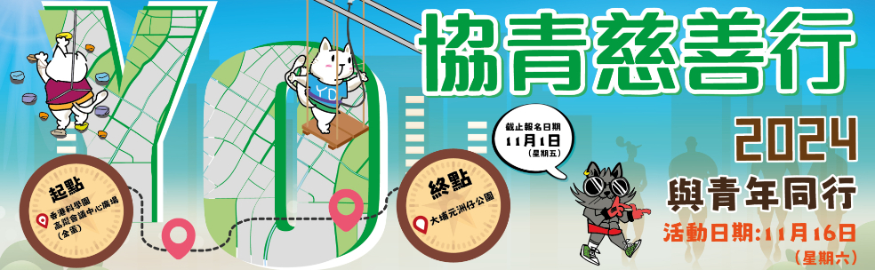 「協青慈善行2024」將於11月16日假科學園高錕會議中心廣場舉行。慈善行踏入第九屆,今屆主題設計繼續由青年為YO創作一系列以青年文化為主題的圖案,創作別具YO文化的繪圖及賽事禮品。路線經過白石角海濱長廊,邊步行邊欣賞海濱風景,沿途更有一眾YO青年人為參加者打氣。此外,場內設有由YO青年人策劃的攤位,包括充氣攀石牆、即影即有拍攝區等,為參加者帶來既刺激又有趣的全新體驗!