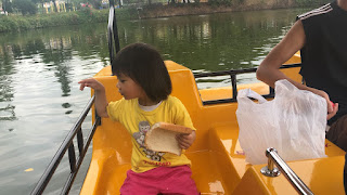 一邊餵魚、欣賞湖景,好快就會講返,媽媽細個果陣時....