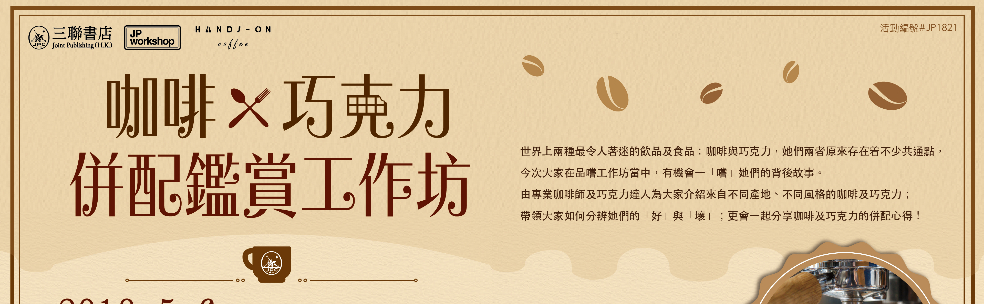 世界上兩種最令人著迷的飲品及食品:咖啡與巧克力,她們兩者原來存在着不少共通點。今次大家在品嚐工作坊當中,有機會一「嚐」她們的背後故事。由專業咖啡師及巧克力達人會為大家介紹來自不同產地、不同風格的咖啡及巧克力;帶領大家如何分辨她們的「好」與「壞」;更會一起分享咖啡及巧克力的併配心得。