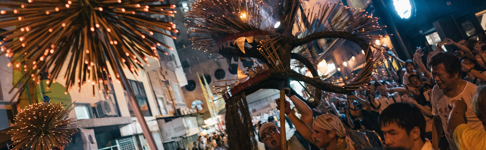 一片鑼鼓聲中,火龍穿梭大坑一帶的大街小巷,頓時煙香繚繞、火光閃爍,充滿生氣! 這道香港獨有的美麗風景,源於19世紀居民為求消除瘟疫而起, 如今更成為國家級非物質文化遺產。