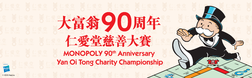 2025年是世界知名的經典桌遊「大富翁」發行90周年,香港慈善團體仁愛堂將與大富翁夢想世界TM合辦「大富翁90周年仁愛堂慈善大賽」,作為香港區官方慶祝活動,活動同時為仁愛堂各項福利服務籌募善款。比賽將分別於2025年2月15日及22日舉行初賽及決賽,參賽名額為1,000人。