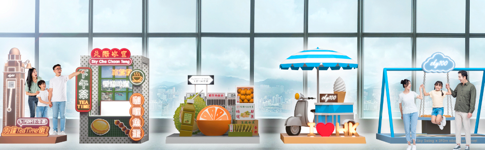 天際100作為香港唯一最高的室內觀景台,全天候提供居高臨下的非凡視野,俯瞰香港全貌及維多利亞港,宛如迷你版的城市景觀盡收眼底。今個夏日,天際100香港觀景台(天際100)將於7月19日至9月3日舉辦「3點3下午茶–港景、港味道」主題活動,帶領訪客穿梭海拔393米的高空觀賞壯麗的天際線,體驗獨特的港式下午茶文化,觀景台特設五大熱爆港式經典主題打卡佈置,糅合香港文化及人氣小食的元素,展現傳統冰室、閃耀霓虹燈和具有歷史建築的果欄等特色街景,在360度無遮擋壯麗景致襯托下,拍攝出港式風情的相片,締造難忘回憶。此外,天際100更聯乘百年老字號店鋪於周末「3點3下午茶」時段舉辦免費美食活動,讓大家品嘗滋味小食,認識港式下午茶文化。同時更不可錯過由Café 100 by The Ritz-Carlton, Hong Kong推出的全新本地特色下午茶餐及芭菲雪糕,為炎炎夏日帶來涼滲滲感覺。今個暑假,快與親朋好友結伴同遊天際100,感受地道美食及視覺帶來的雙重享受。