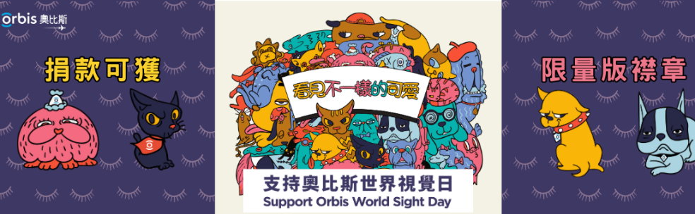 藉著今年「世界視覺日」,奧比斯鼓勵全城珍惜寶貴視力,同時集結力量全力捐助,將不一樣的可愛散播到世界每一個角落。捐款支持,獲贈可愛動物紀念襟章