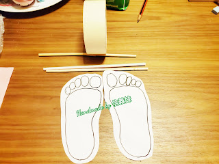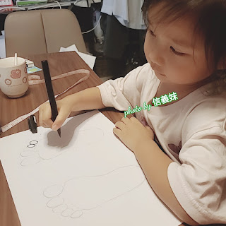 1 先將小朋友腳仔外型劃係紙上