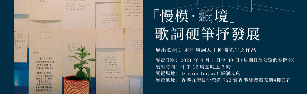 當你想讓腦袋好好休息一下的時候,不妨來「慢模.紙境」歌詞硬筆抒發展,提起任何一支你最喜歡的筆,靜下來聽著歌用心勾勒出橫、豎、撇、捺;然後把歌詞掛起,咀嚼最熟悉不過的廣東字句,發掘意想不到的寧靜和樂趣。