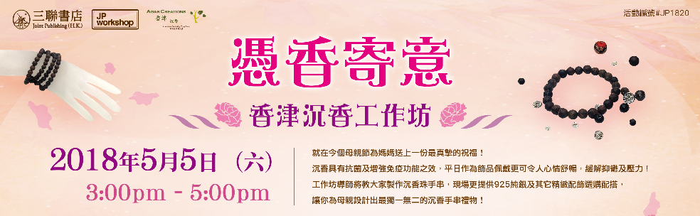 就在今個母親節為媽媽送上一份最真摰的祝福吧,沉香具有抗菌及增強免疫功能之效,平日作為飾品佩戴更可令人心情舒暢,緩解抑鬱及壓力!工作坊導師將教大家製作沉香珠手串,現場更提供925純銀及其它精緻配飾選購配搭,讓你為母親設計出最獨一無二的沉香手串禮物!
