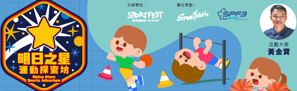 「明日之星運動探索坊」為6-12歲的兒童率先提供一系列刺激的體適能挑戰,於開學前可讓小朋友一顯身手。每位參加者在所屬的挑戰區內完成不同運動能力的挑戰,包括彈跳力、反應、力量、速度、平衡力和手眼協調等。從各項精心設計的體適能測試中,增加對自身表現有基本了解,當完成各項挑戰後會獲得一份成績單以紀錄表現。每個項目按特定計分方式評分,更有助家長知道參加者體能的強弱處,對日後的呈分試體育課打好基礎。