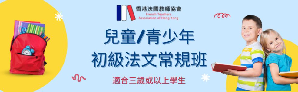 香港法國教師協會有超過20名法籍老師,提供單對單或小組法語初班予3歲或以上兒童及青少年,適合無法語基礎學生,每星期一節課,可考級(請聯絡我們了解更多)。