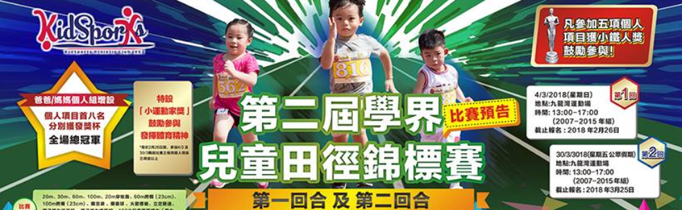 *凡於2月26日前報名參加兩回合(4/3及30/3)之相同的個人項目三項或以上,可獲頒發「小運動家獎盃」