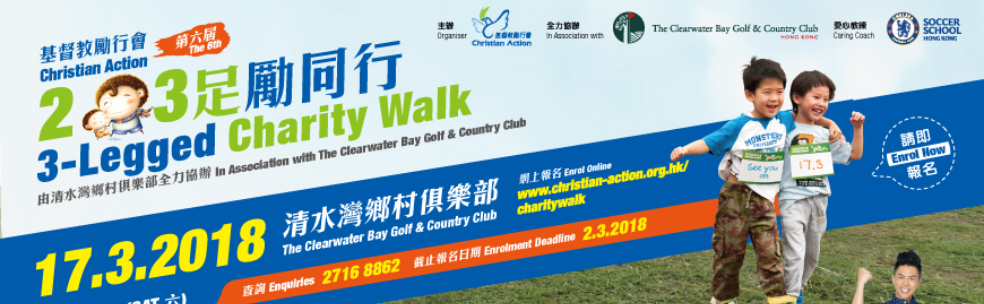 第六屆「2人3足勵同行」將於2018年3月17日(星期六) 在清水灣鄉村俱樂部載譽舉行!一如以往,所有善款將支持本會服務基層家庭兒童、青海省孤兒及殘障兒童。