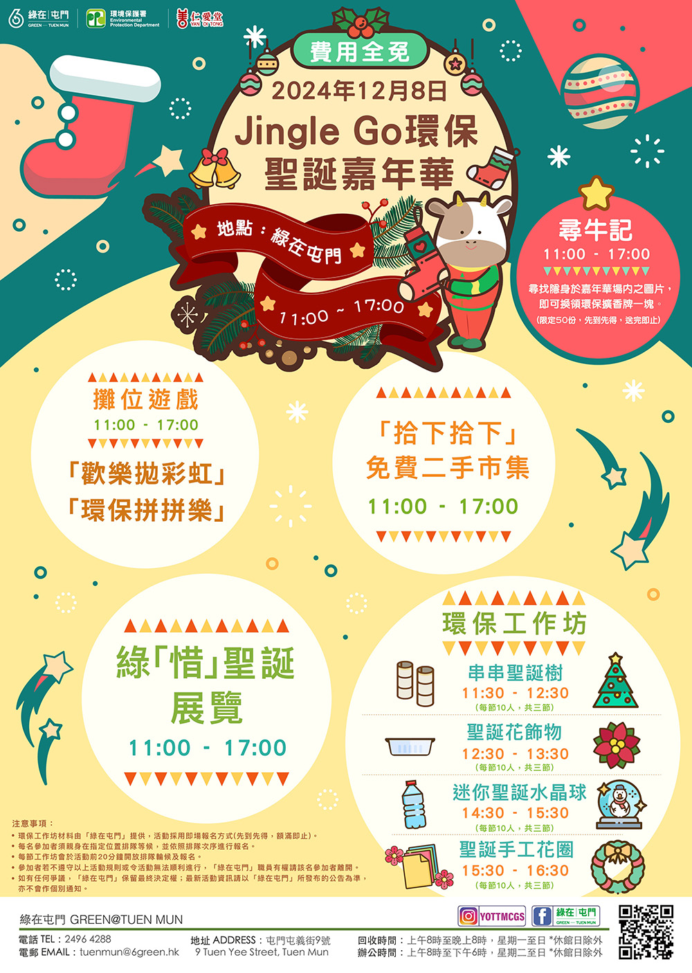 🎈活動:綠「惜」聖誕展覽、環保工作坊、免費二手物市集、攤位遊戲及「尋牛記」特別活動