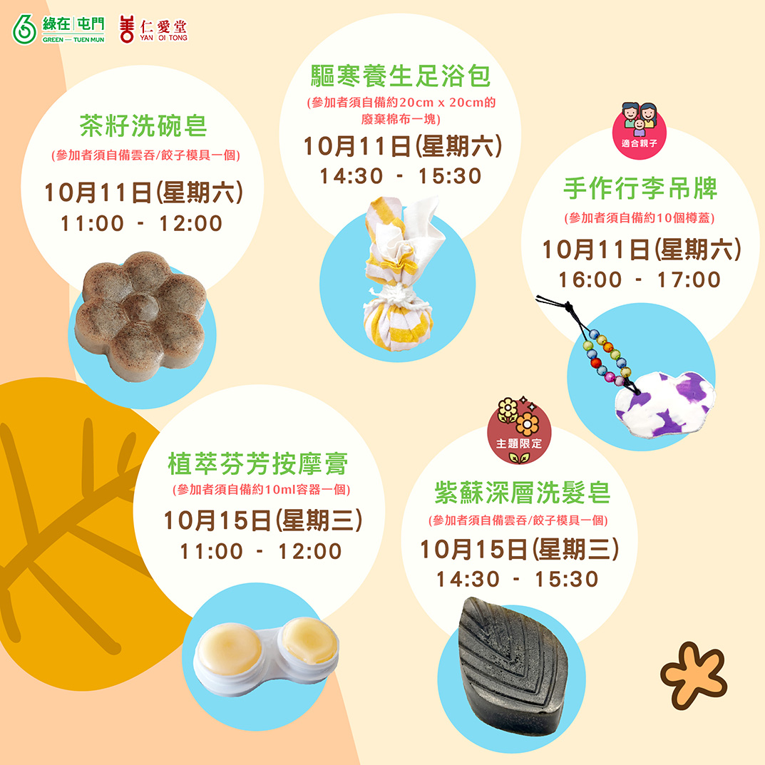 工作坊「綠在屯門」2025年10月份環保工作坊(費用全免)