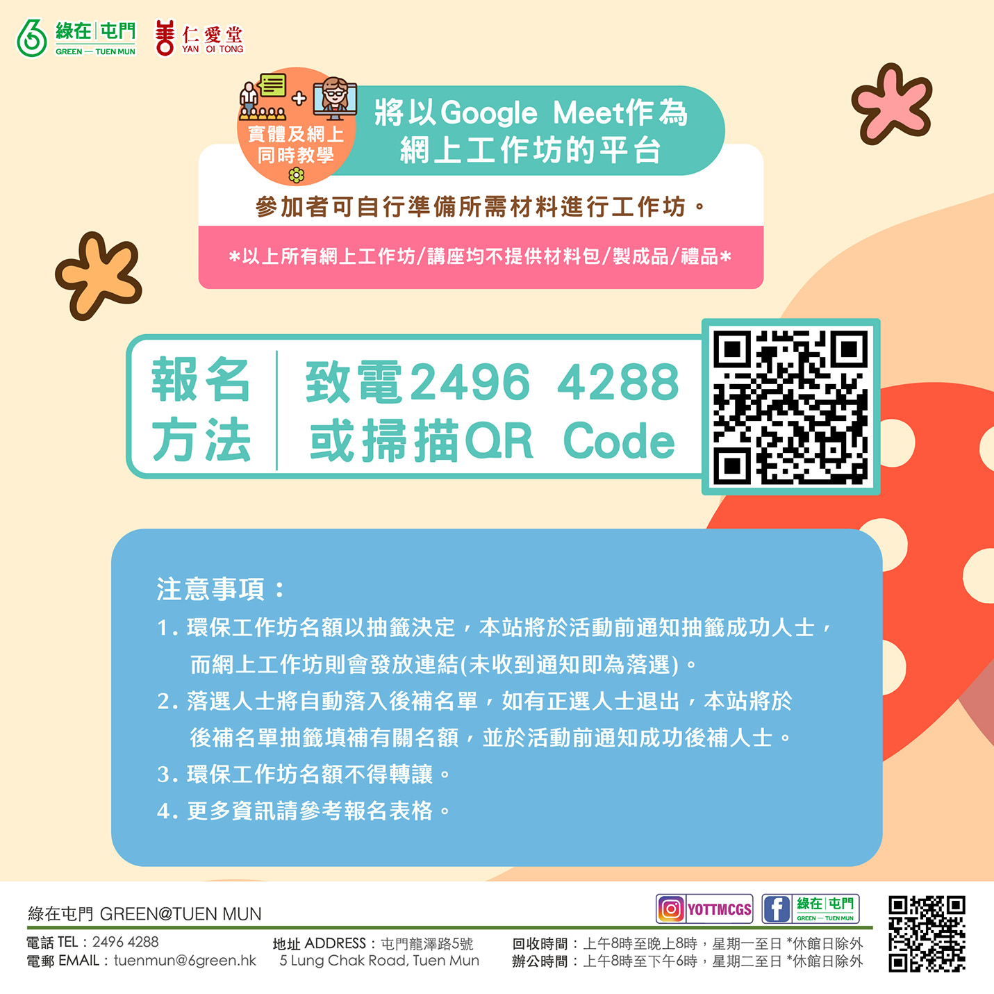 - 👍環保工作坊會以 #實體教學 及 #網上教學 同步進行