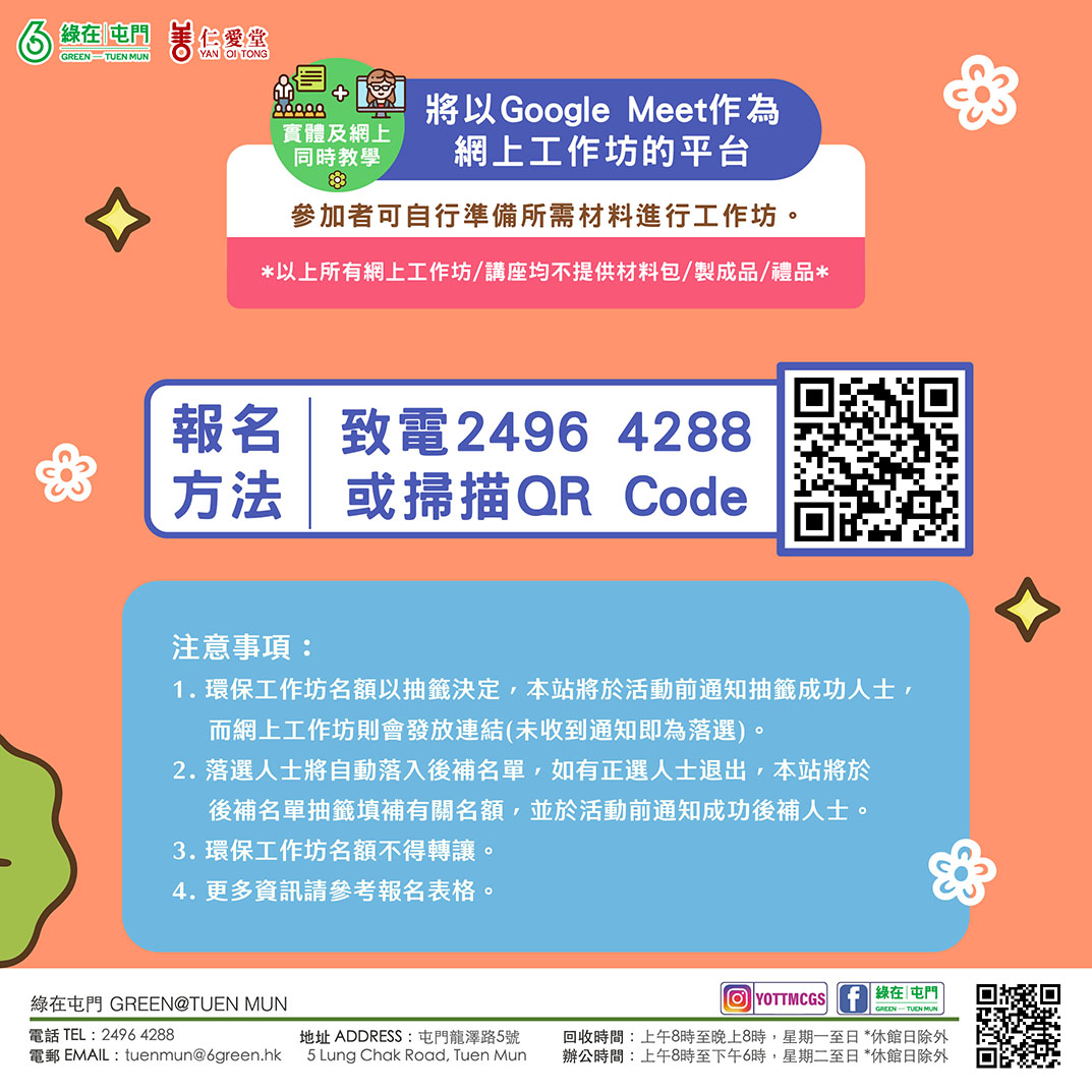- 👍環保工作坊會以 #實體教學 及 #網上教學 同步進行