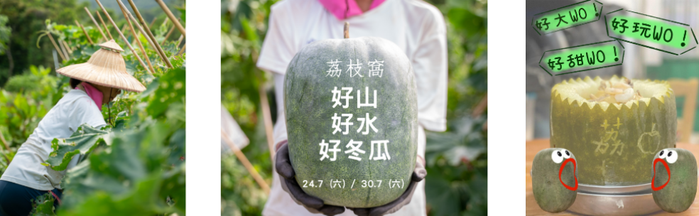 豐富內容:冬瓜雕DIY、柴火圍爐冬瓜盅工作坊、特色冬瓜食譜教學、冬瓜和你拍、田間導賞、小遊戲等多項環節,參加者更可即場加購新鮮冬瓜及其他農產品/ 加工品