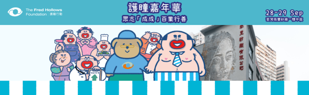 護瞳行動聯乘Cheap Century插畫師Sowinghong筆下角色-大麻成及阿婆一同於9月28至29日(星期六及日)舉辦「護瞳嘉年華」活動!一齊為一年一度的「世界視覺日」出一份力!屆時現場有不同的護眼攤位遊戲,讓家長和小朋友齊齊學習最新的護眼知識!此外,由即日起至10月31日,只要捐款支持護瞳行動世界視覺日,捐款將有贊助配對同樣金額,更獲得限量版畫家親手設計的大麻成眼鏡布!百業行善,捐款倍增,齊齊支持這個有意義的活動!