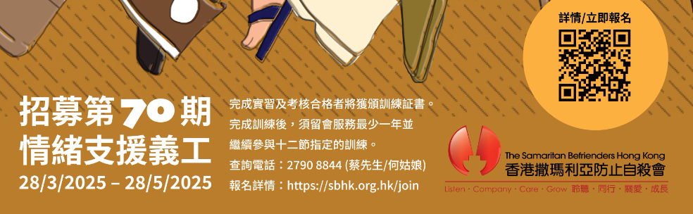 活動香港撒瑪利亞防止自殺會【第70期情緒支援義工招募延長至5月28日截止】