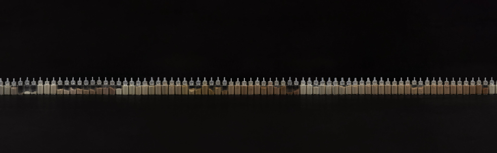 「煉土採色」是「維城淨土」展覽的第二章。這次,李美娟進一步篩煉和研磨原生土,尋找泥土的色彩。她以目測的方式篩選般咸道24至28號的原生土,依泥土的顏色分類,經篩煉、研磨,製成了顏料,最後分出一百種顏色。這些顏料便是《B.Rd 24-28/I/100》的一百色。