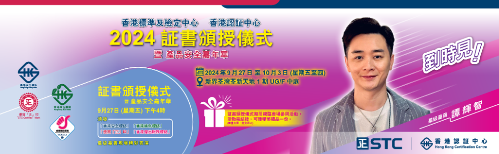 香港標準及檢定中心 (STC) 聯合香港認証中心 (HKCC) 即将舉辦一年一度的「証書頒授儀式」及「產品安全嘉年華」活動。