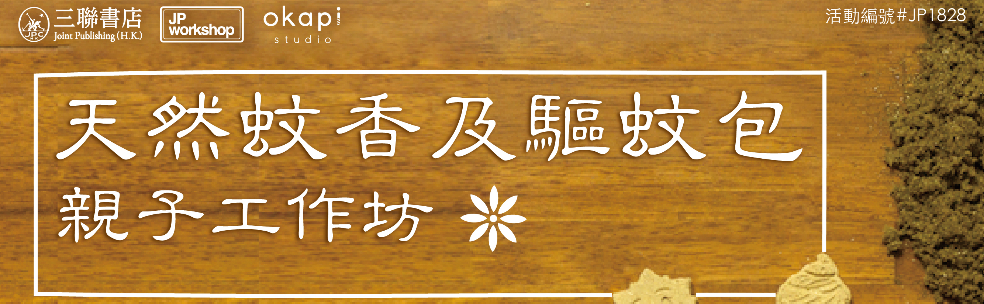 來製作天然蚊香和驅蚊包吧!參加者可混入不同的木本或草本植物原料,創造出專屬的獨特香味,製作出不同形狀的天然蚊香。全天然原料燃燒帶來的芳香,可去除因潮濕而產生的霉味;燒畢之灰燼可直接倒進泥土,充當盆栽肥料養分,物盡其用!另外,導師更會教大家利用十多種原材料自製具驅蚊功能或芳香提神的香薰袋,讓你一次過滿足多個願望!