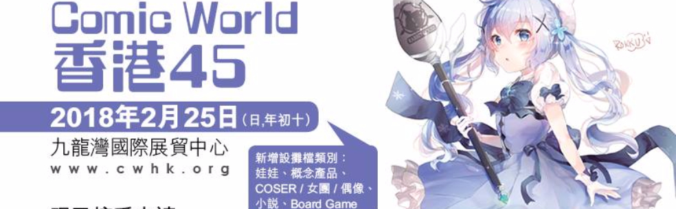 ● 冠軍 作品會被用作為「Comic World香港45」場刊的封面
