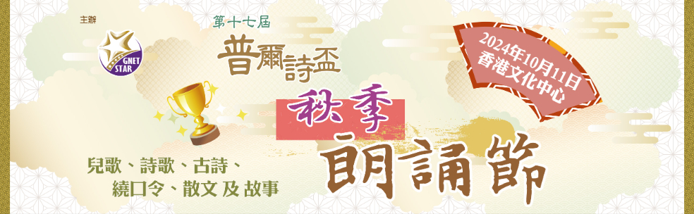 | 評審標準: | 評判將根據參賽者的整體朗誦藝術表現評分,包括但不限於:吐字、聲調、節奏、語速、台風、演繹 |