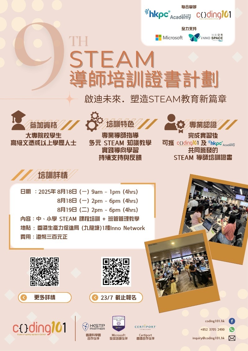 HKPC Academy再度與 Coding101 攜手合作籌辦第九屆「STEAM導師培訓證書計劃」