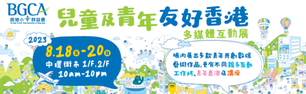 由香港小童群益會舉辦的《兒童及青年友好香港》多媒體互動展以「兒童及青年友好香港」為主題,圍繞「七大兒童及青年友好服務範疇」展示家庭、學校、社區的共同協作力量,鼓勵大眾以行動響應社會責任使命,攜手創建有利兒童及青少年身心發展的「兒童及青年友好香港」。展覽將會在 2023 年 8 月 18 至 20 日期間,於中環街市一樓及二樓免費開放予公眾參與。